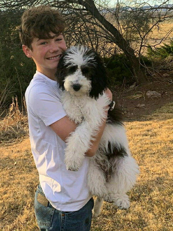 At the meeting of the Kiwanis Club of Grand Junction, Thursday, January 13, Rita Crumpton graduated Remi and her boy Kadyn. Along with Remi and Kadyn is pictured Kadyn’s mom Rachel. Remi, always alert, was busy checking out the bag of goodies from Chow Down Pet Supply. Below is a picture of Remi and Kadyn when they were raw recruits.